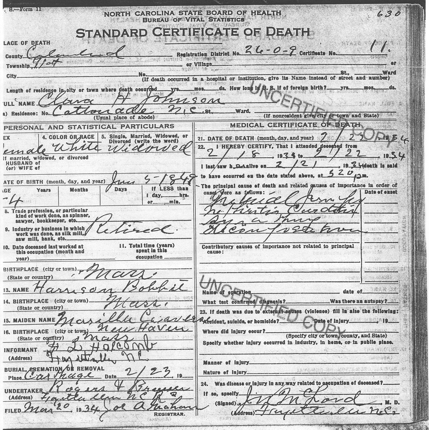 - [S865] Ckara F. Johnson, DC: Clara F. Johnson.