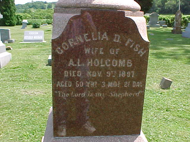 Cornelia D. Fish was born in 1837; GS.1 She married Albert Holcombe, son of Albern Holcombe and Elizabeth Thomas, in 1855; no children.1 Cornelia D. Fish died on 9 November 1897; GS.1 She was buried at Bear Valley Cemetery, Buena Vista, Richland Co., WI.