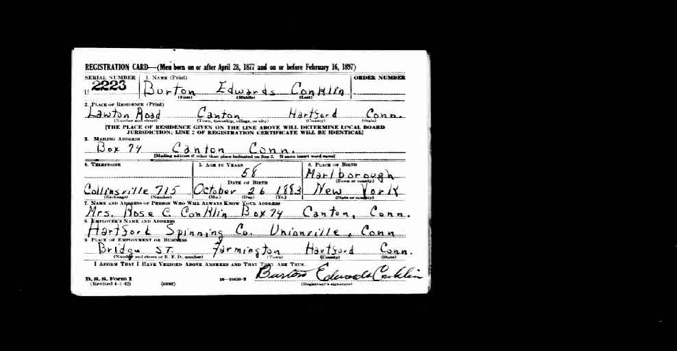 Arlene C. Conklin was born on 8 February 1930 at Canton, Hartford Co., CT. She was the daughter of Burton Edwards Conklin and Rosa Candace Case. Arlene C. Conklin died on 13 May 2020 at John Dempsy Hospital, Farmington, Hartford Co., CT, at age 90.